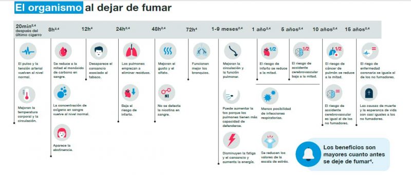 Como cada año, dejar de fumar, se convierte en el principal objetivo de muchas personas que quiere dejar ese mal hábito y tener una vida más saludable. En Adeslas tenemos los mejores profesionales que te ayudarán en tan difícil tarea para muchos. Mientras, con este cuadro de como se comporta nuestro organismo al dejar de fumar, quizás encuentres el camino.